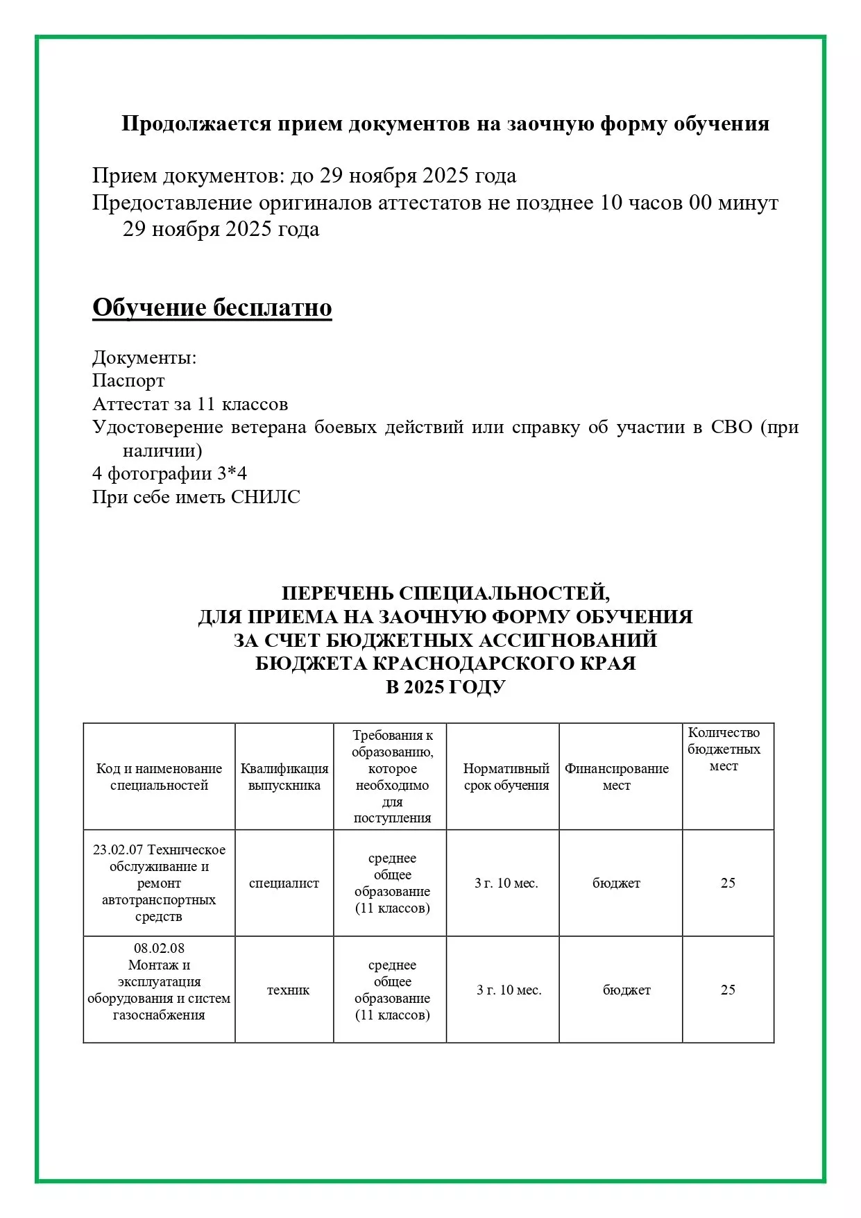Срок обучения на базе 11 классов – 3 года 10 месяцев для специальностей: