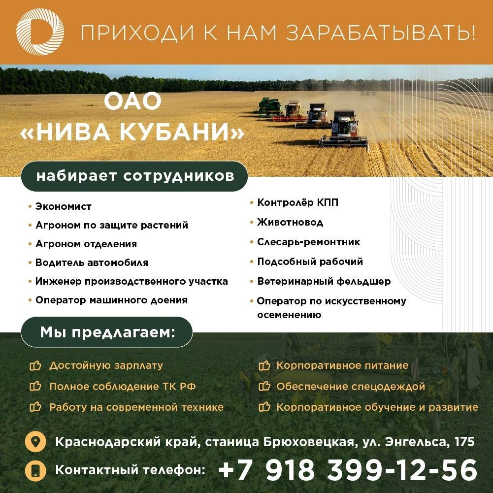 🔥В ЗАО «Тимашевец» требуется Весовщик в сельском хозяйстве